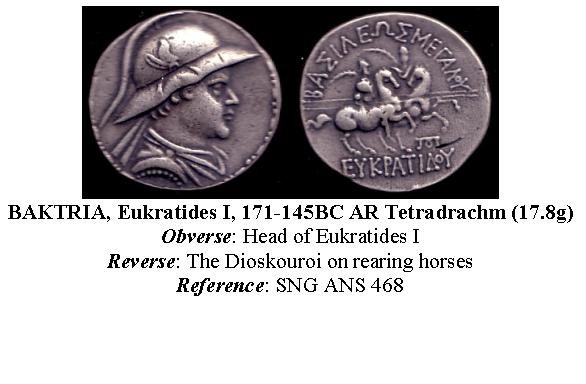 ![]() Baktria, Eukratides I, 171-145 BC AR Tetradrachm Sold by Online Liquidators under at least 1 alias - click for details |