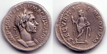 Macrinus 217-218AD AR Denarius Securitas Sold by Online Liquidators under 7 aliases - click for details |