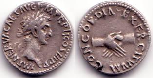 Nerva AR Denarius Clasped Hands Sold by Online Liquidators under 3 aliases - click for details |