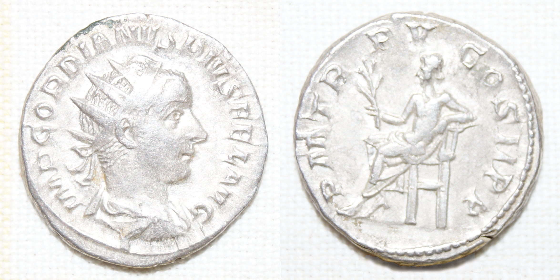 - IMP GORDIANVS PIVS FEL AVG Gordianus, his radiate, draped and cuirassed bust right. |