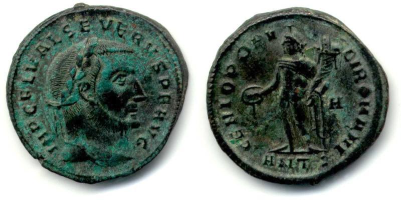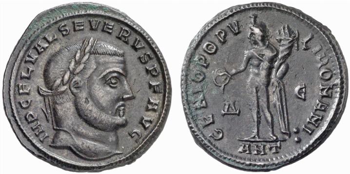 | Severus II as Augustus The "Lost" GENIO POPVLI ROMANI Issue of Antioch, July 306 - Spring 307 AD Overlooked by RIC VI. Multiple specimens known for all 10 officina! |