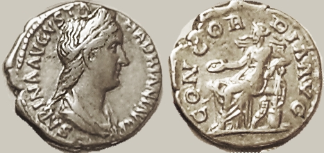 Sabina - Augusta 128-136 A.D., Wife of Hadrian Silver Denarius - 18.22mm, 3.07g | |