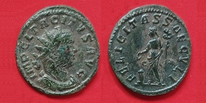 | Obverse - IMP C M CL TACITVS AVG Tacitus, his radiate, draped and cuirassed bust right |